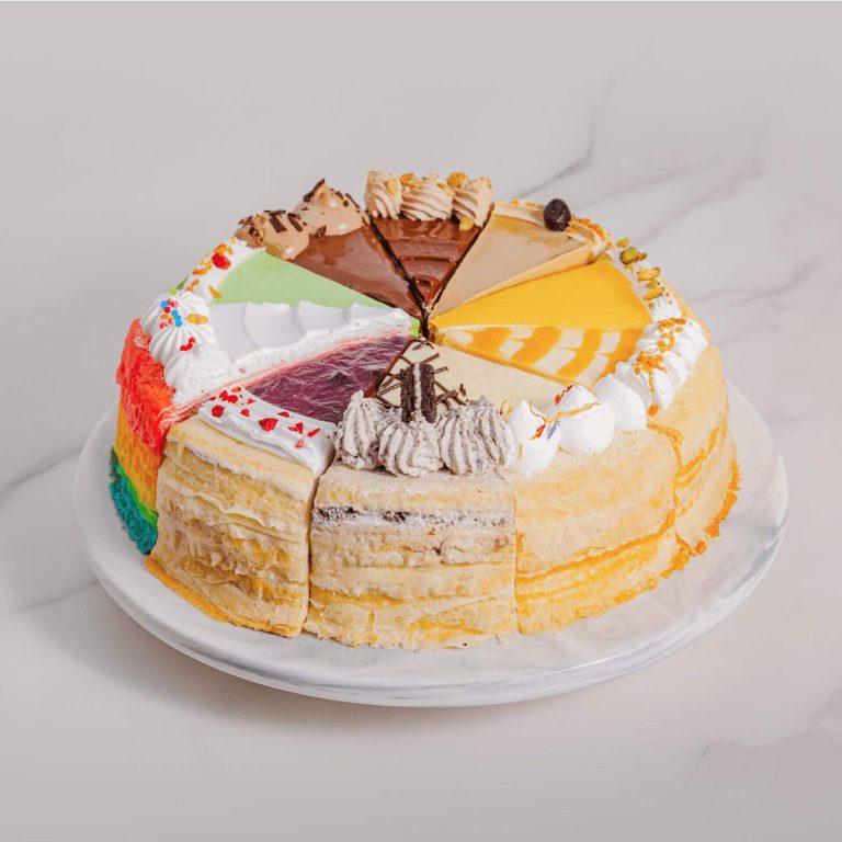 Our most popular cakes are Dark Chocolate Crepe Cakes, Tiramisu Crepe Cakes, Rainbow Crepe Cakes.